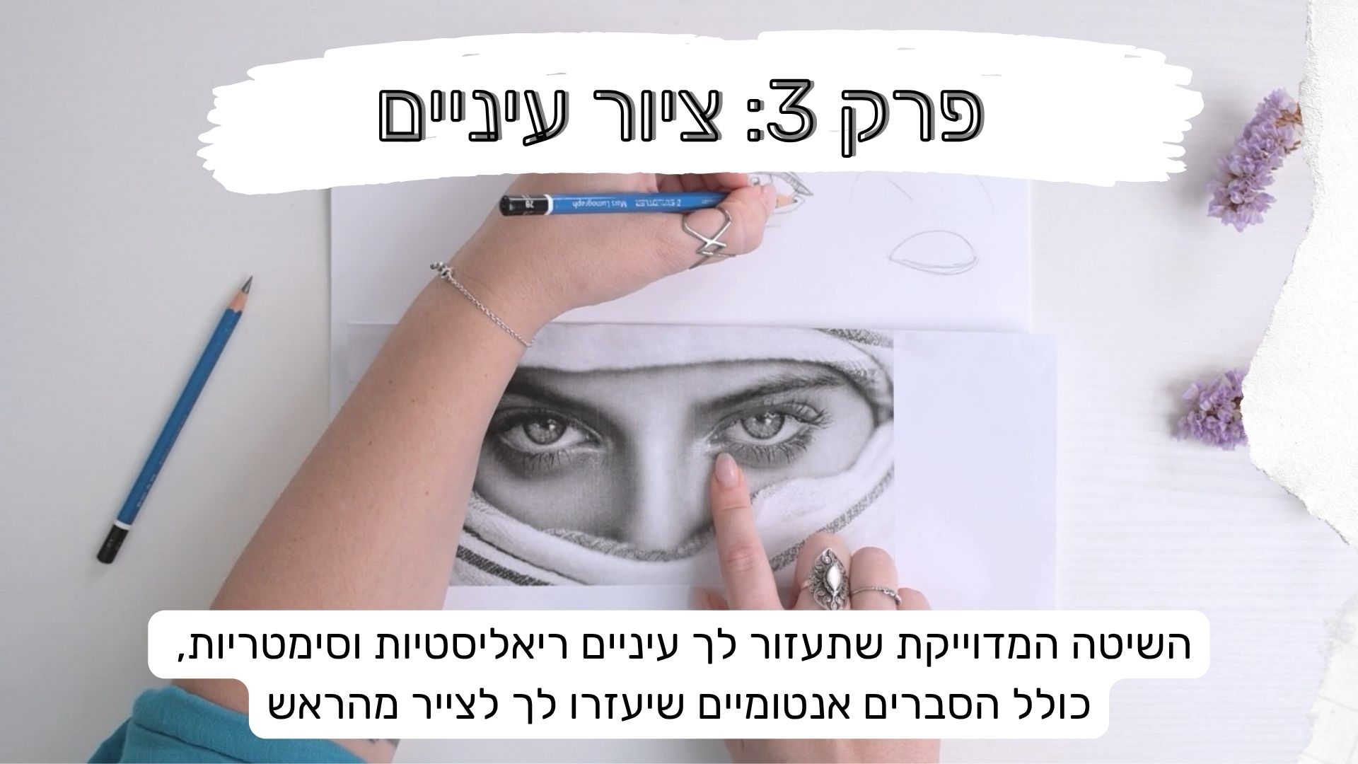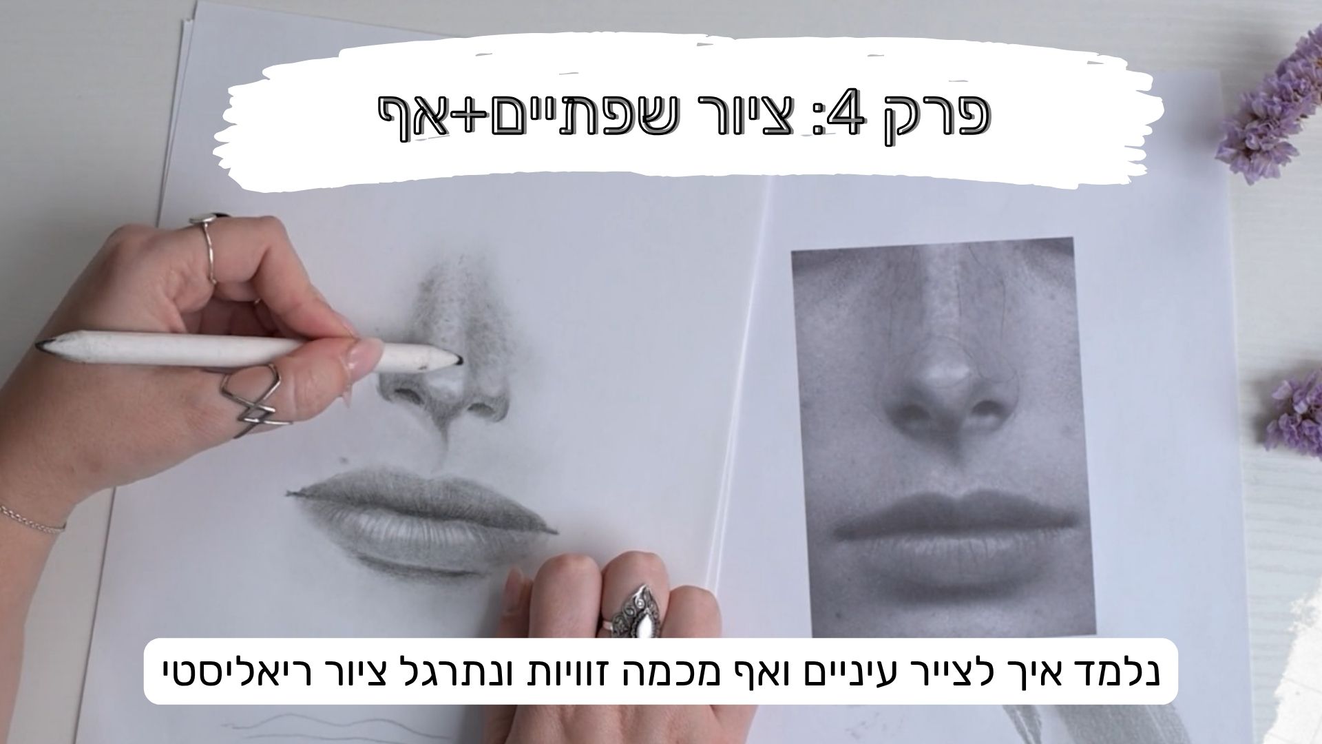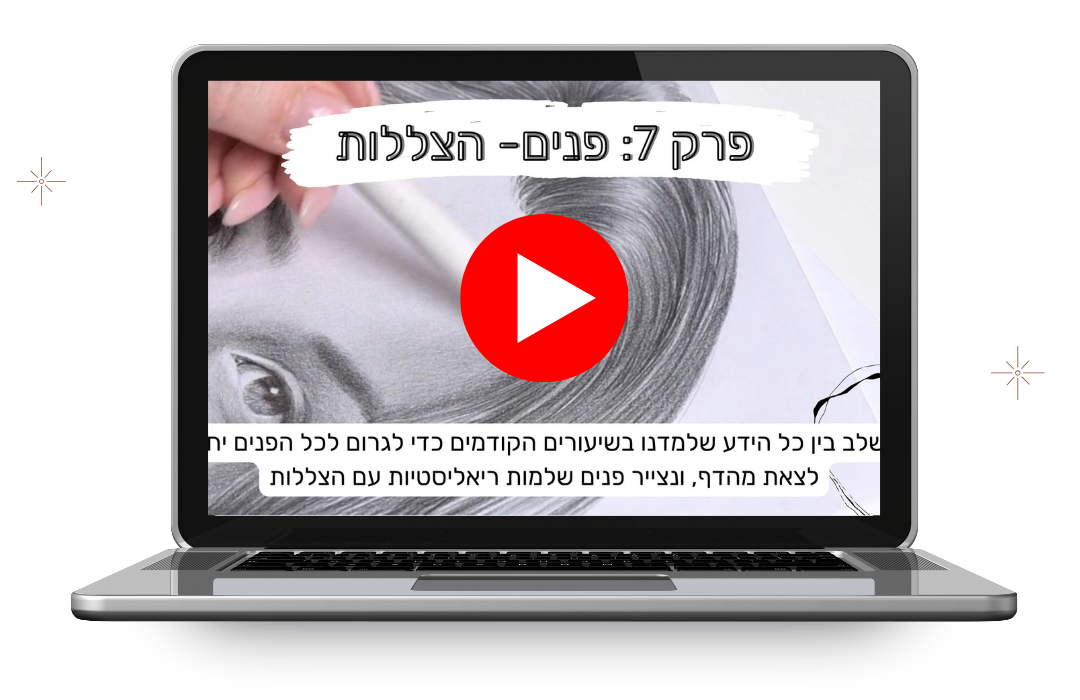 ✏️ הסברים פשוטים וברורים לכל חלק בפנים: עיניים, אף, שפתיים, שיער, אור וצל.
