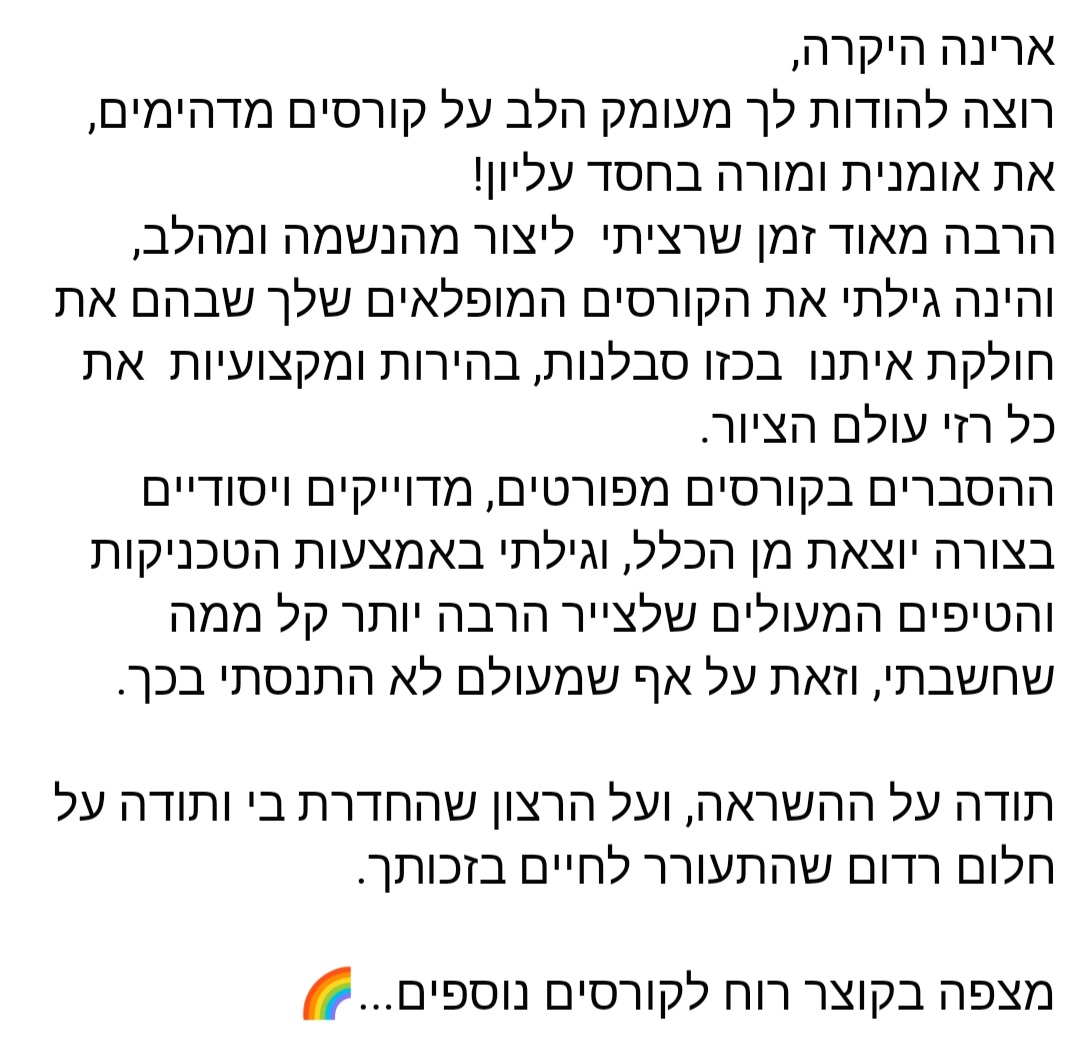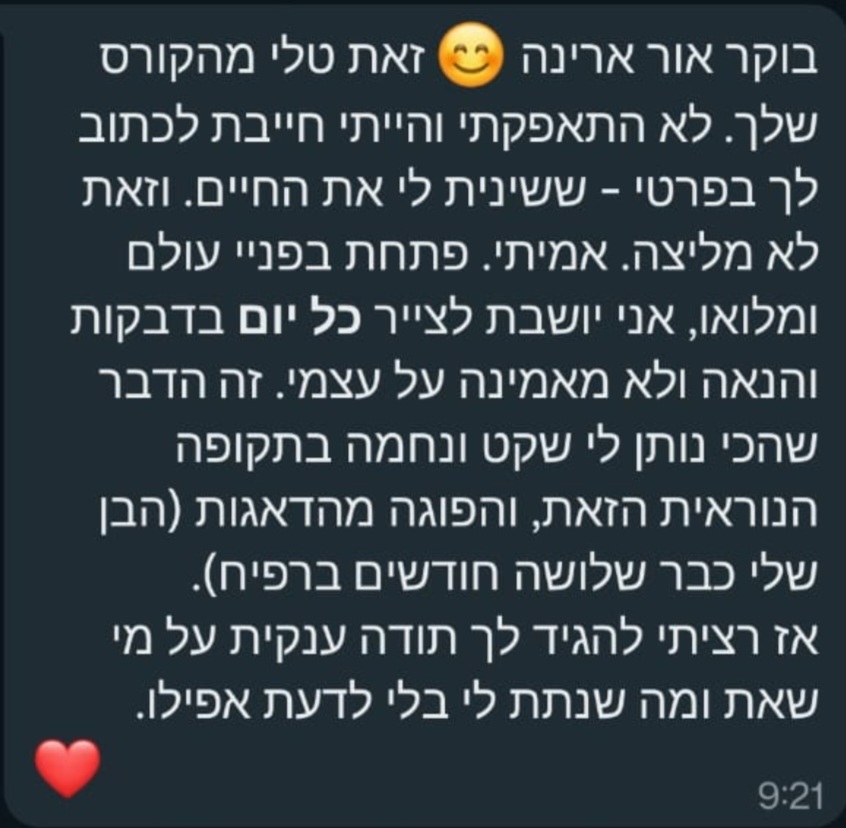 שכולל גם קבוצת ווטסאפ סגורה בה אני נותנת תמיכה, משוב וליווי אישי-