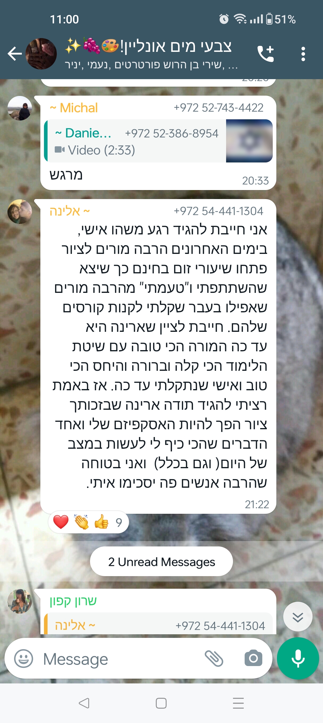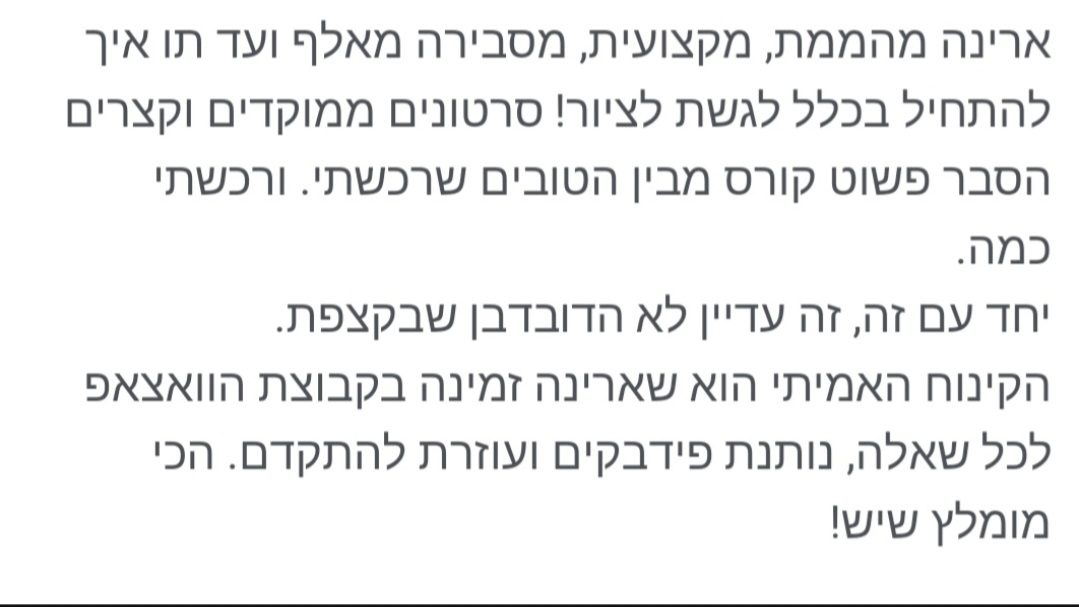 - קבוצת ווצאפ למשתתפי הקורס עם פידבק ומענה לשאלות במהלךך הלימוד