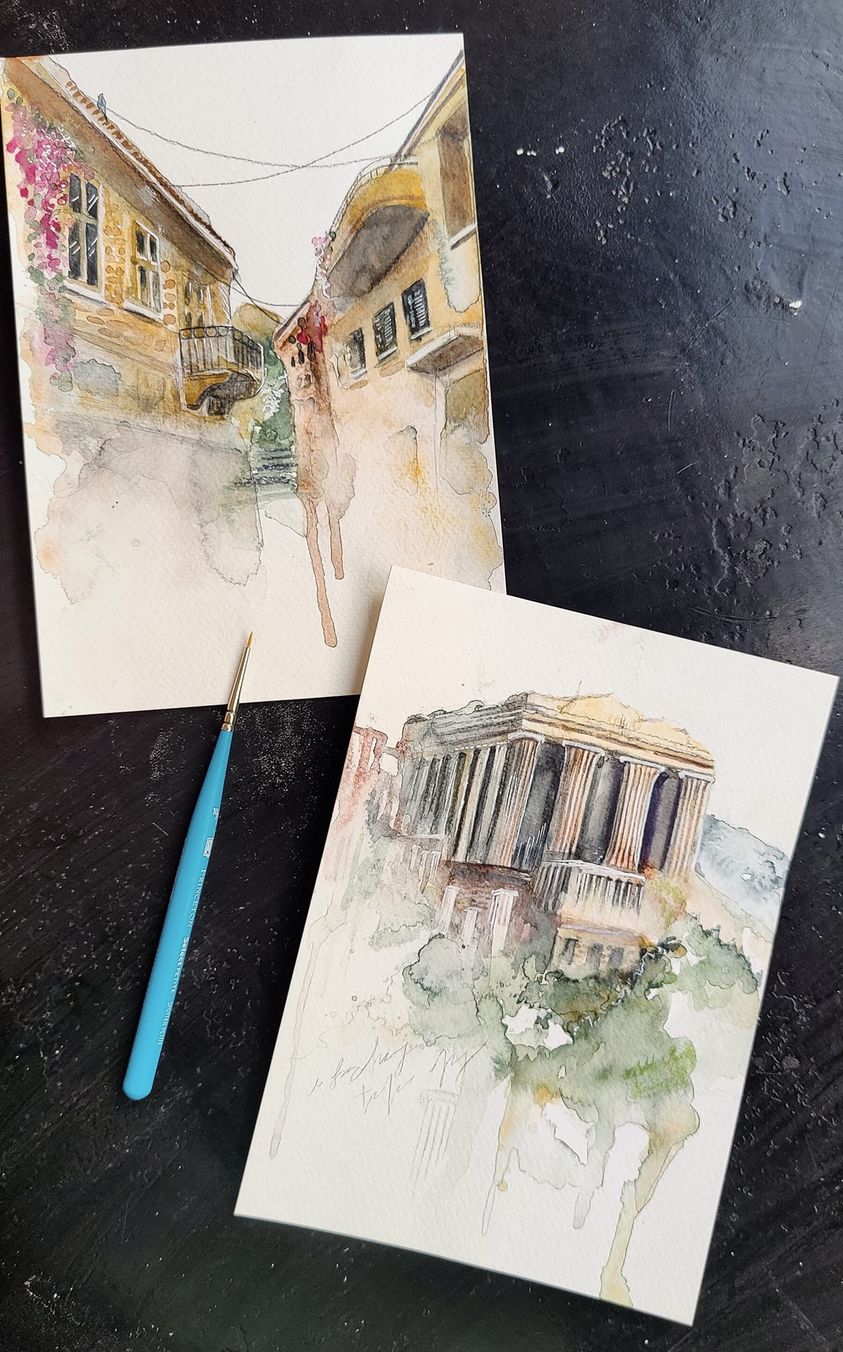 -שיטות עבודה עם שילוב של עט וצבעי מים ליצירת אפקטים שונים, ואיך זה יכול לשדרג כל ציור בהמון רמות