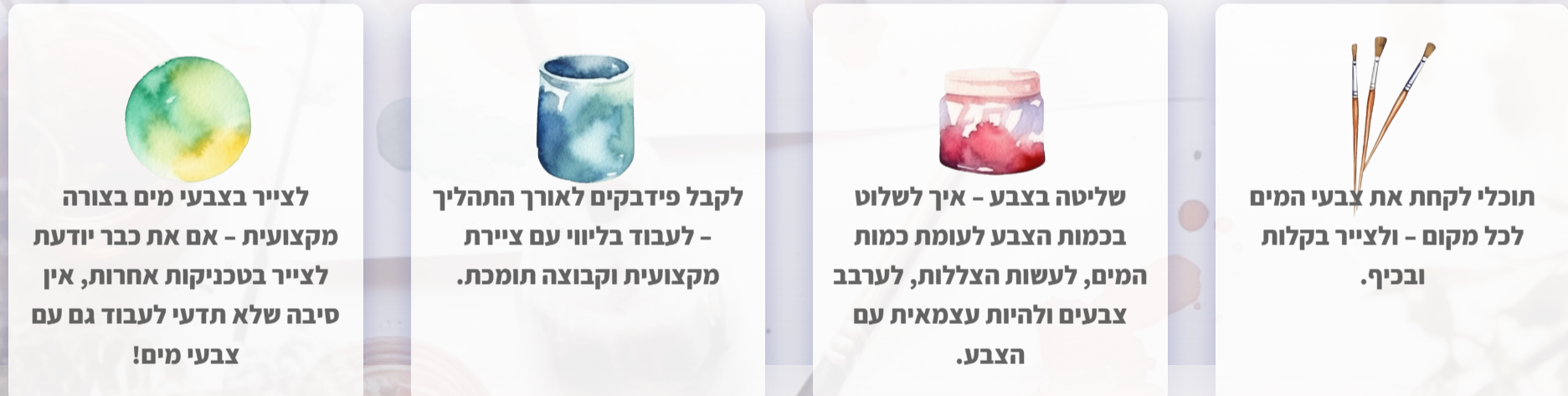 או אם התחלת לאחרונה לצייר וצבעי המים מושכים אותך ויש הרגשה של קריאה פנימית לעבוד איתם-